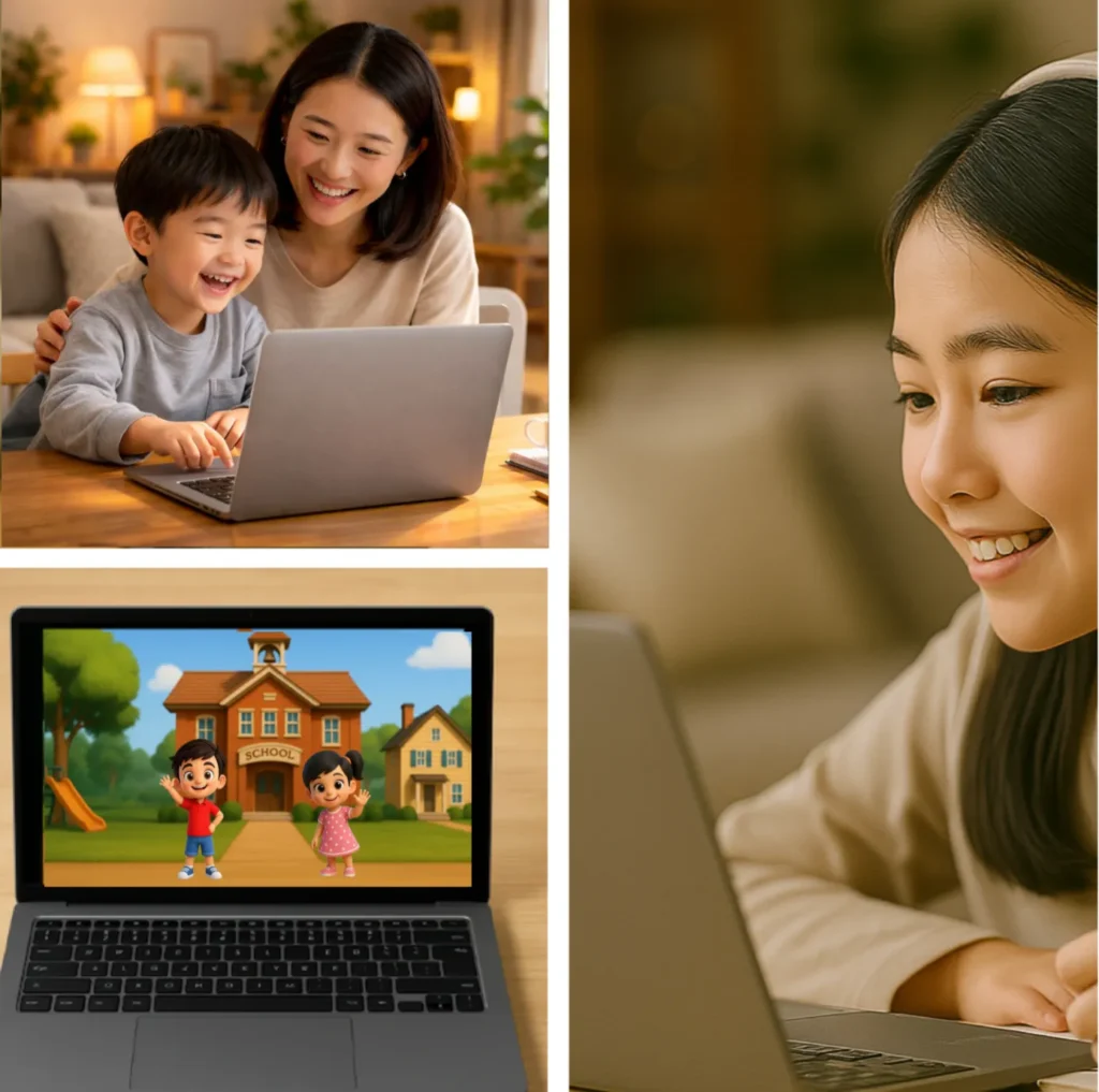 はい、まったく問題ありません。レッスンはキャラクターがすべてをリードするため、保護者が英語を話したり、教えたりする必要は一切ありません。そばで見守っていただくだけで大丈夫です。